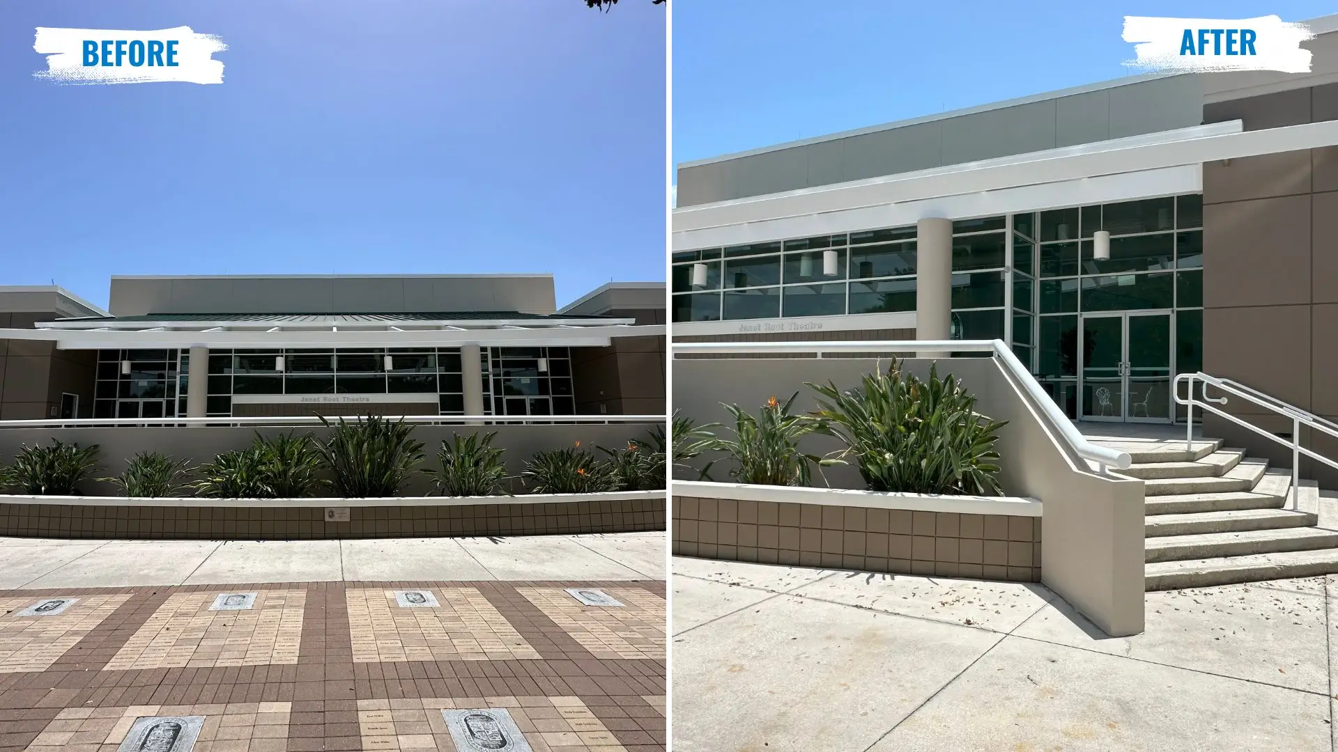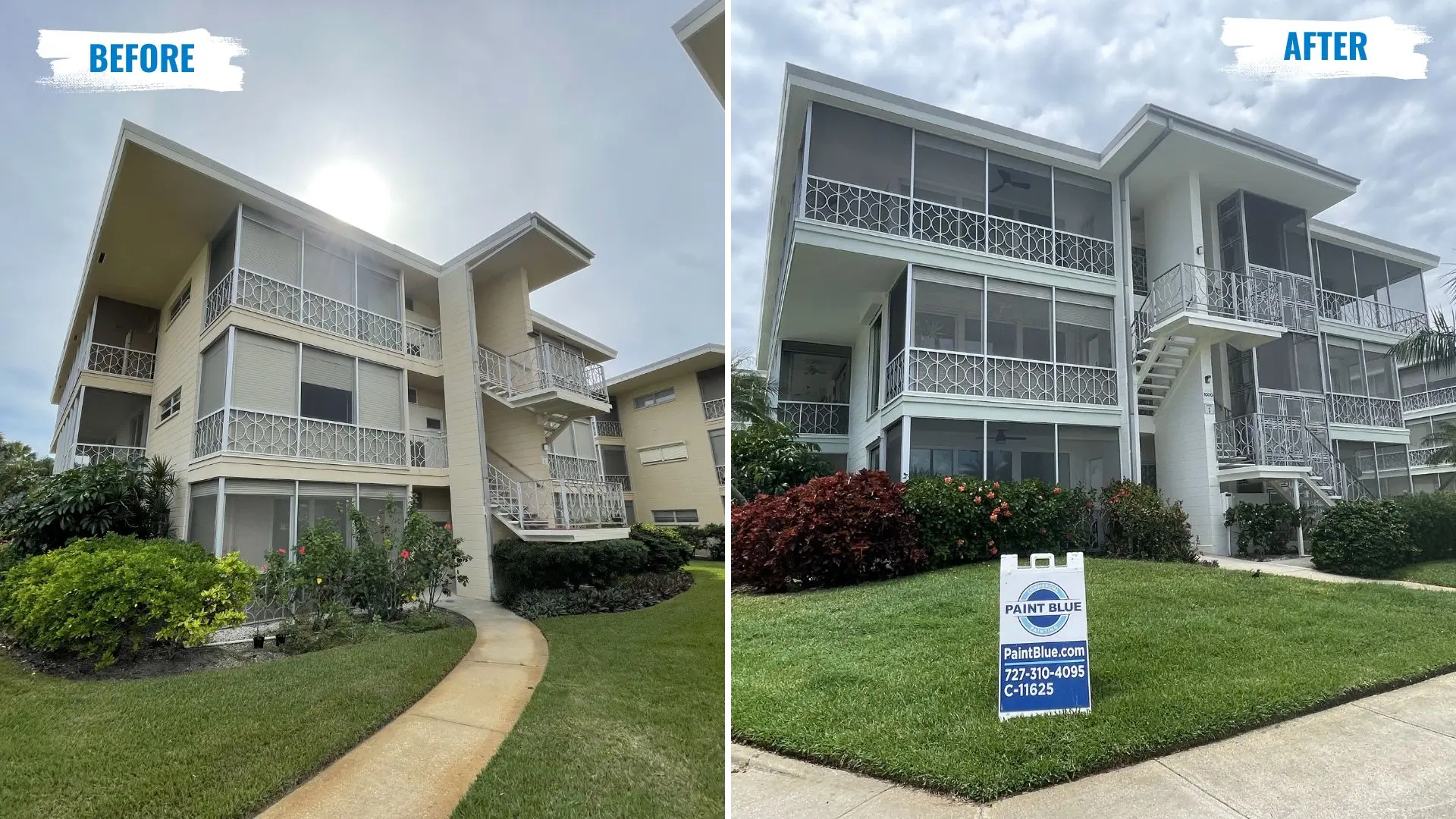 Above are real before and after commercial painting projects completed by our team across the Tampa Bay region, including warehouses, retail shopping centers, HOA communities, schools, retirement facilities, and mid-rise commercial buildings.